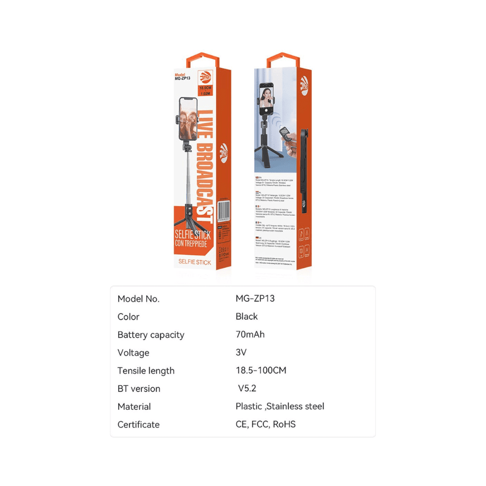 MG ZP13 Selfie Stick – Bluetooth Extendable Tripod with Remote Shutter